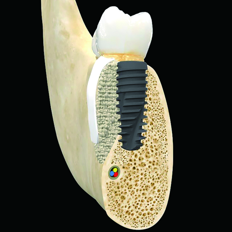 임플란트의 뿌리 역할을 하는 부분으로, 잇몸뼈(턱뼈)에 식립.