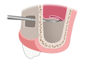 전용 기구를 이용해 상악동의 점막을 들어올려 공간을 만들어 줍니다.