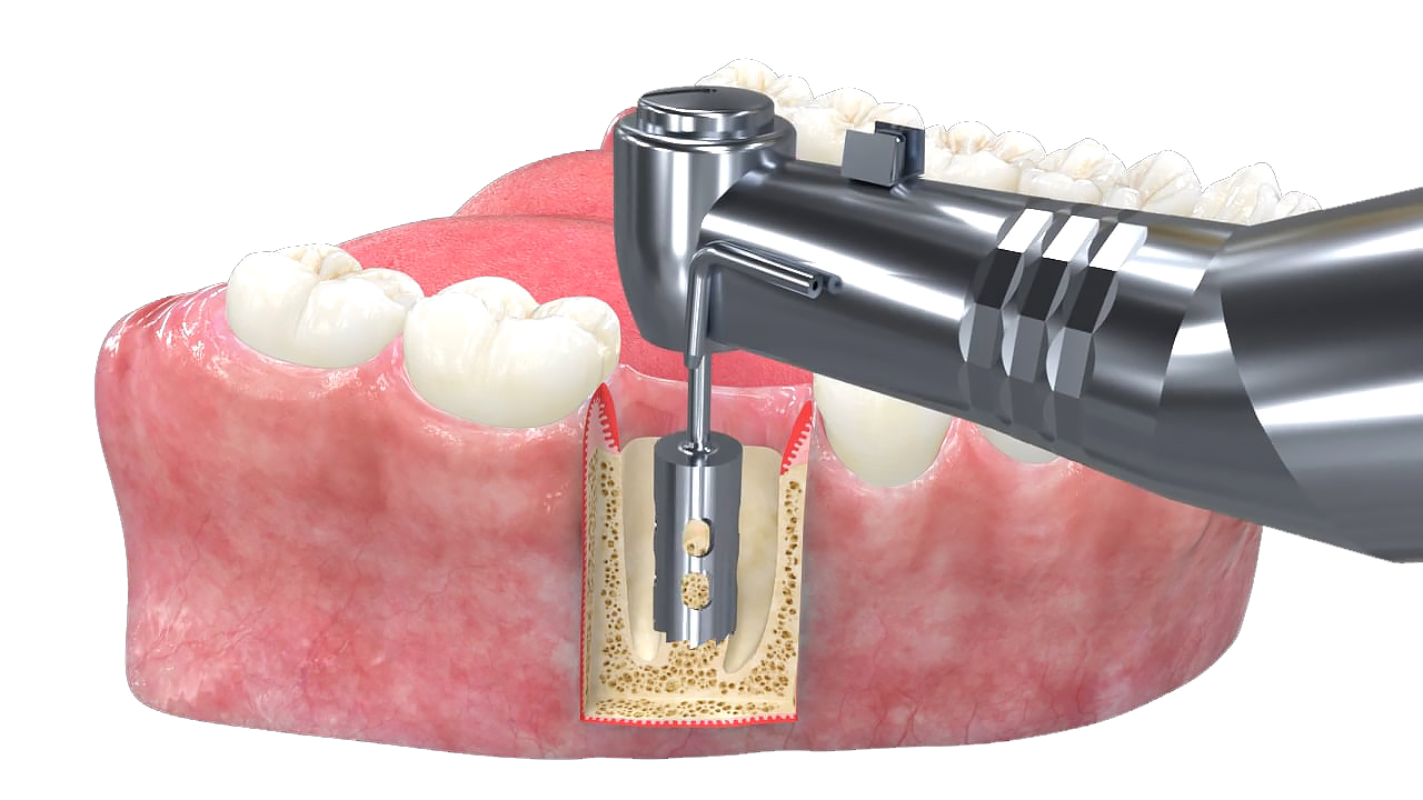 치아뿌리 방향으로 이식재가 들어갈 구멍을 뚫습니다.