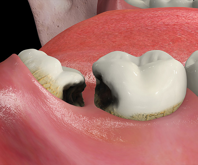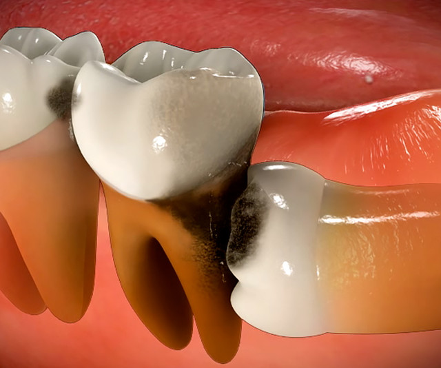 사랑니와 어금니 사이에 음식물이 끼게 되어충치 및 치주염 발생의 위험율이 높아집니다.